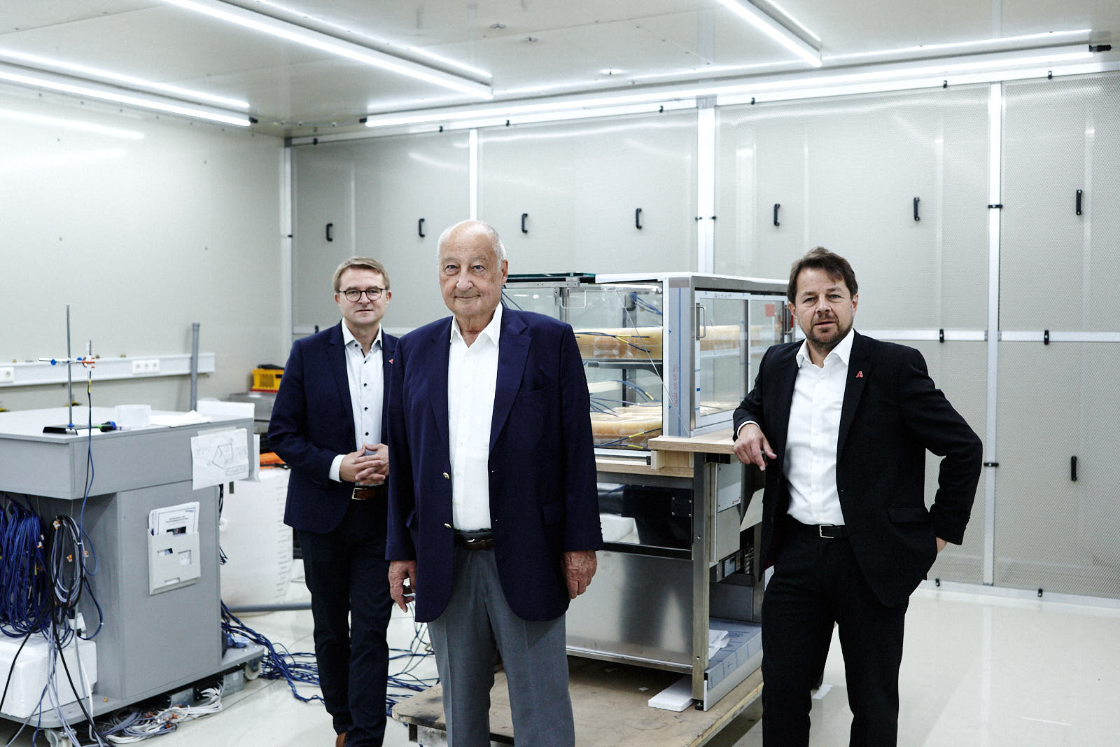 dr.oliver blank (managing director), günther hertel (owner) and dr. thomas Grünewald (managing director) of aichinger shopfitting, wendelstein, germany. on assignment for frankfurter allgemeine zeitung.