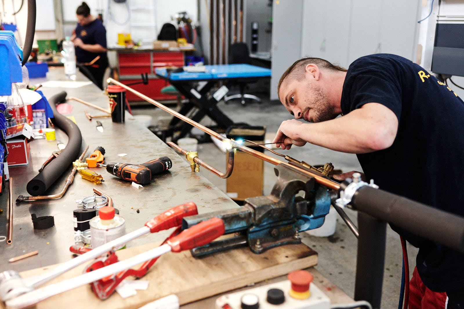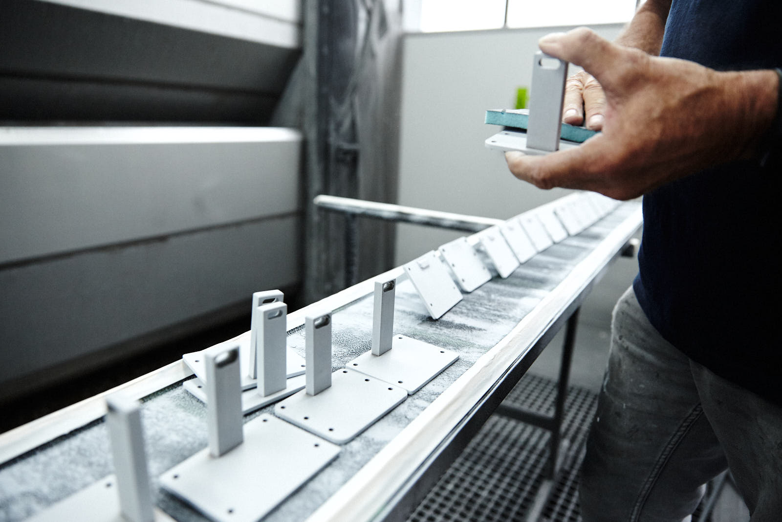 • Mitarbeiter in der Lackiererei, Aichinger Ladenbau in Wendelstein. Fotografiert für die FAZ.
